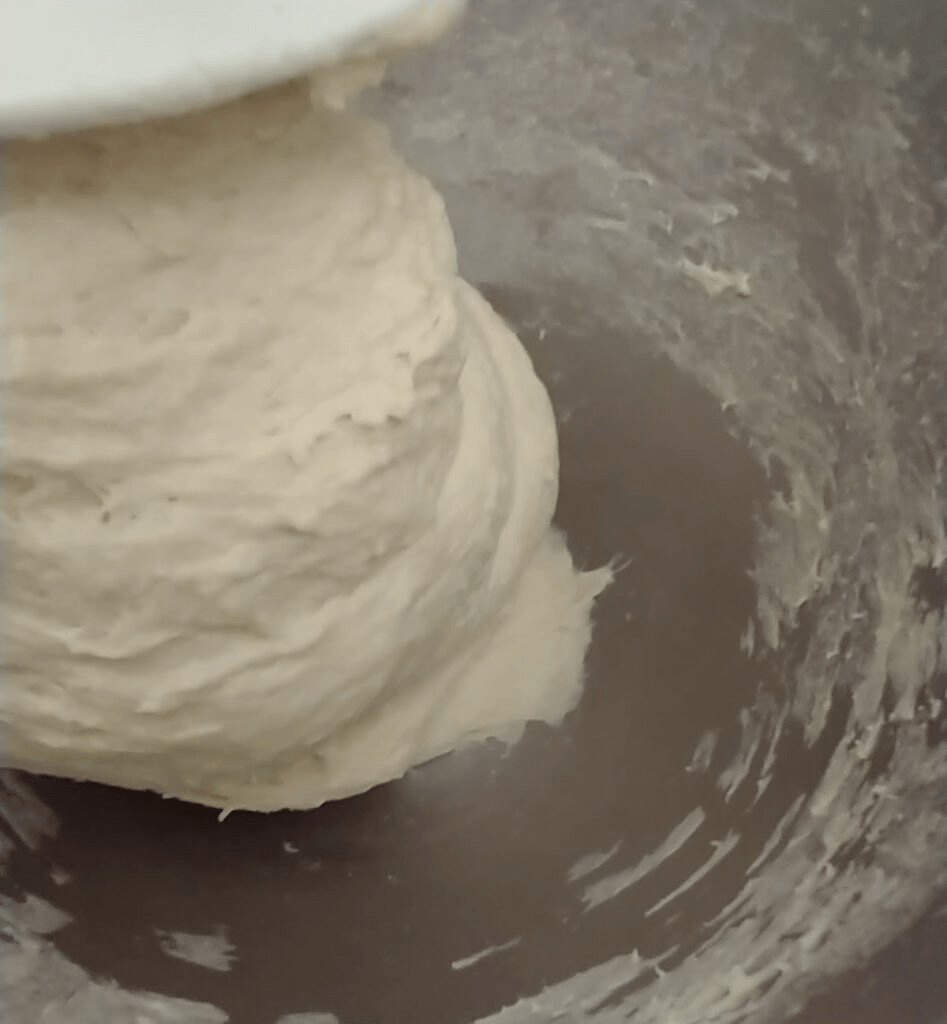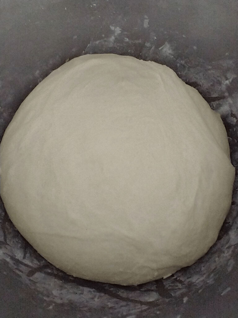 See how the dough is in a ball and only slightly sticking to the bowl?