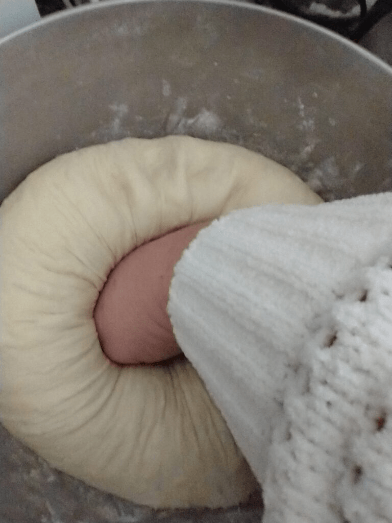 I just place my lightly floured dough back into the mixing bowl to do it’s first rise. Cover your bowl with a clean kitchen towel and let it double in size. This can take a lot time depending on the temperature of the room your dough is in, your altitude, the weather, the flour and yeast, basically everything. I find mine usually double before two hours are up. Check every now and then to see when yours is ready. If you have a proofing drawer or proof setting on your oven, follow the manufacturer’s instructions for using it to help your bread rise.
