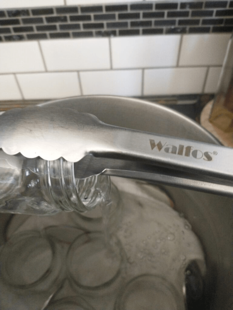 CAREFULLY remove a jar from the hot water. I like to grab the jar with tongs and pour the water back out into the pot by tilting it.