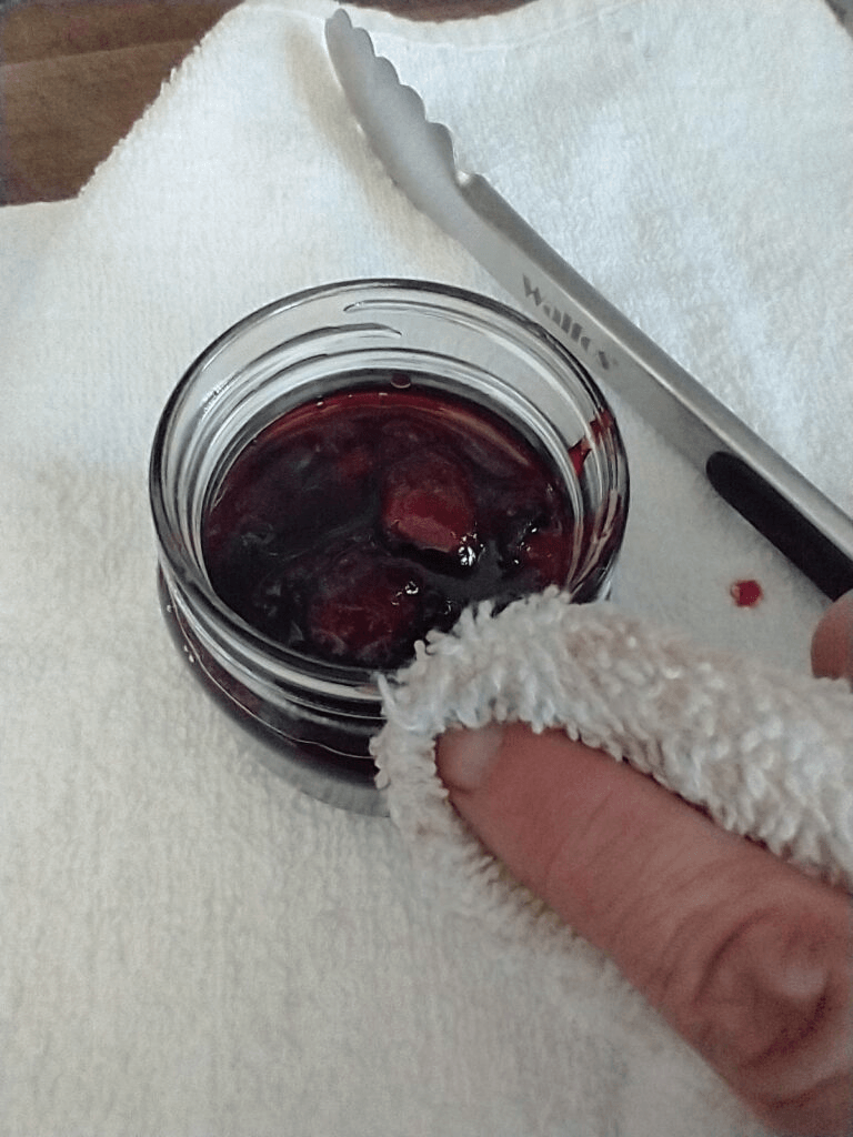 Dampen a towel and wipe away any spills from the rim of the jar where the lid and ring attach.
