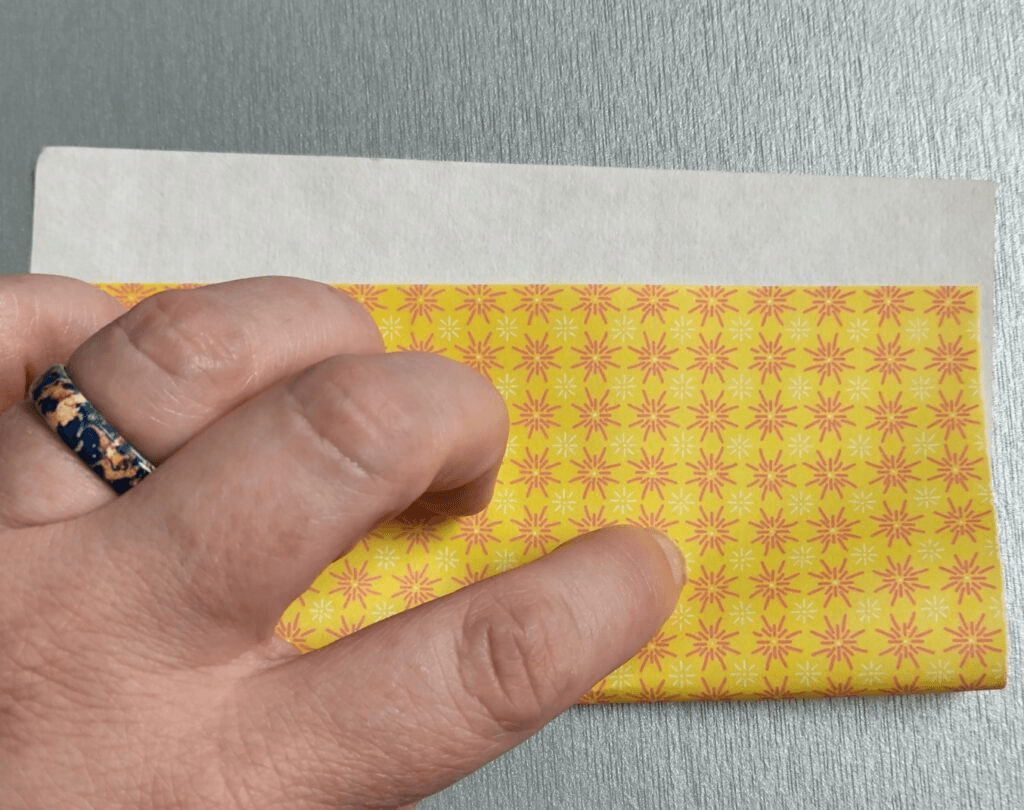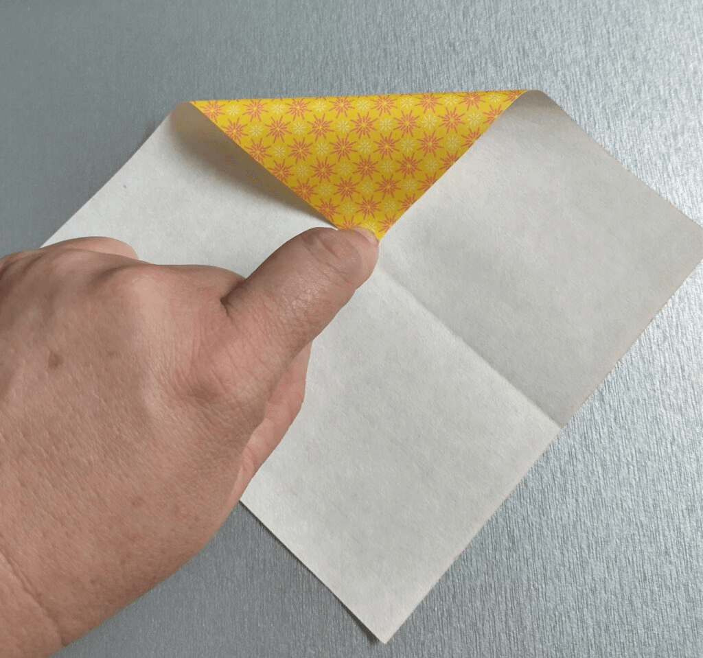 Most origami paper has a front and back side. If the paper you are using doesn’t, that’s fine for this project.