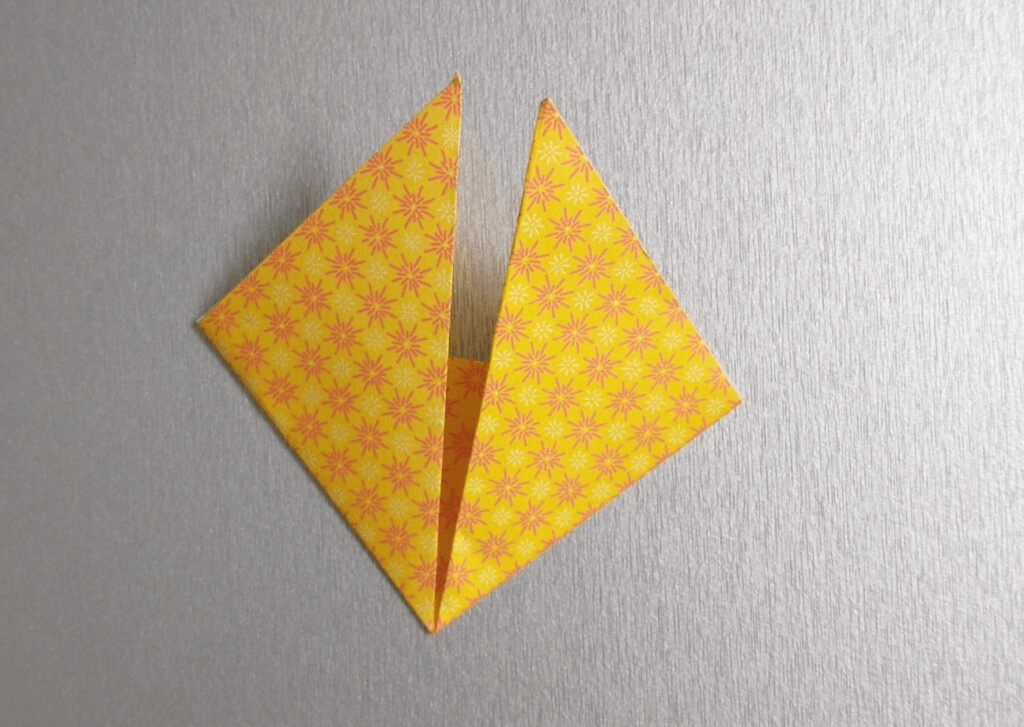 Flip your diamond over. Fold the two points at the top down to the point at the bottom, then unfold them again.