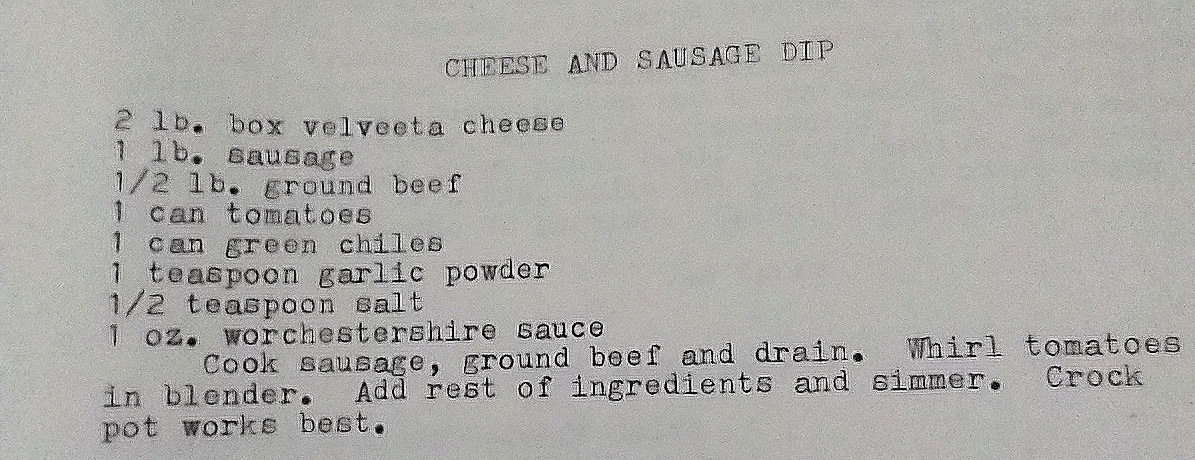 For our inaugural recipe, a selection from the first section of the book entitled, Appetizers, Beverages, Etc. This happens to be a recipe from my mom, and I have enjoyed it many times growing up.